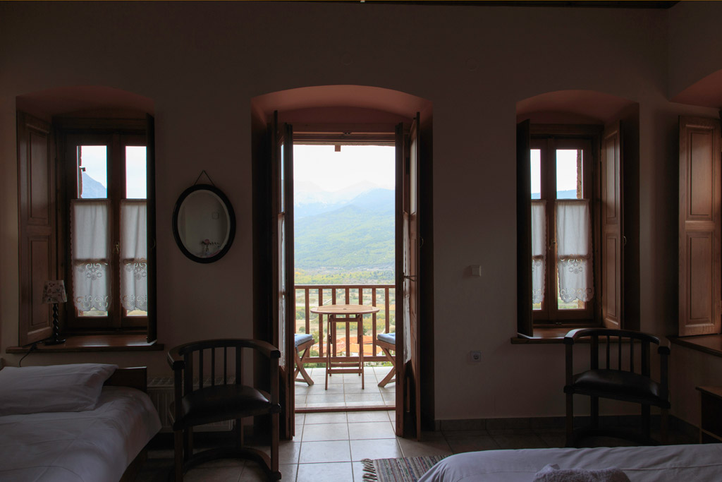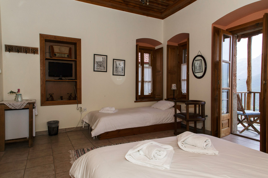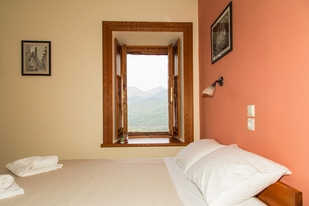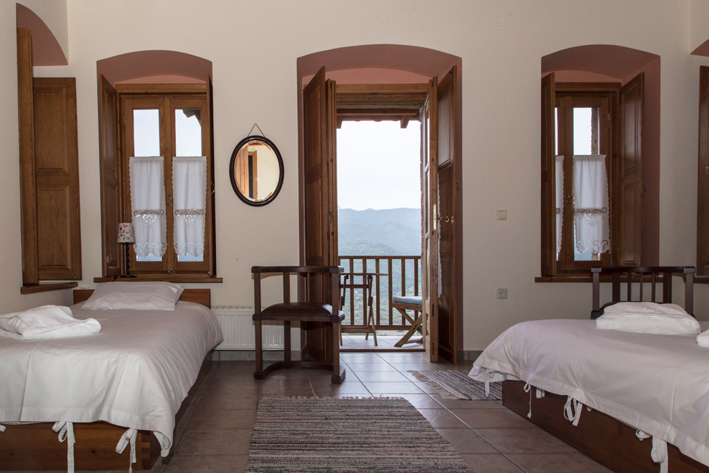 Έχει ένα υπέροχο μικρό εξώστη που βλέπει προς τον κάμπο του Φενεού και το Χελμό και διαθέτει ένα διπλό και ένα μονό κρεβάτι. Μπορεί να χρησιμοποιηθεί και σαν δίκλινο και σαν τρίκλινο.